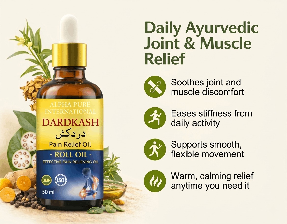 Infused with a unique blend of traditional herbs and nourishing oils, Dardkash Oil works deep within the skin to target pain at its source. Its fast-absorbing formula not only helps reduce inflammation and discomfort but also supports improved mobility and overall muscle relaxation, helping you stay active and pain-free throughout the day.